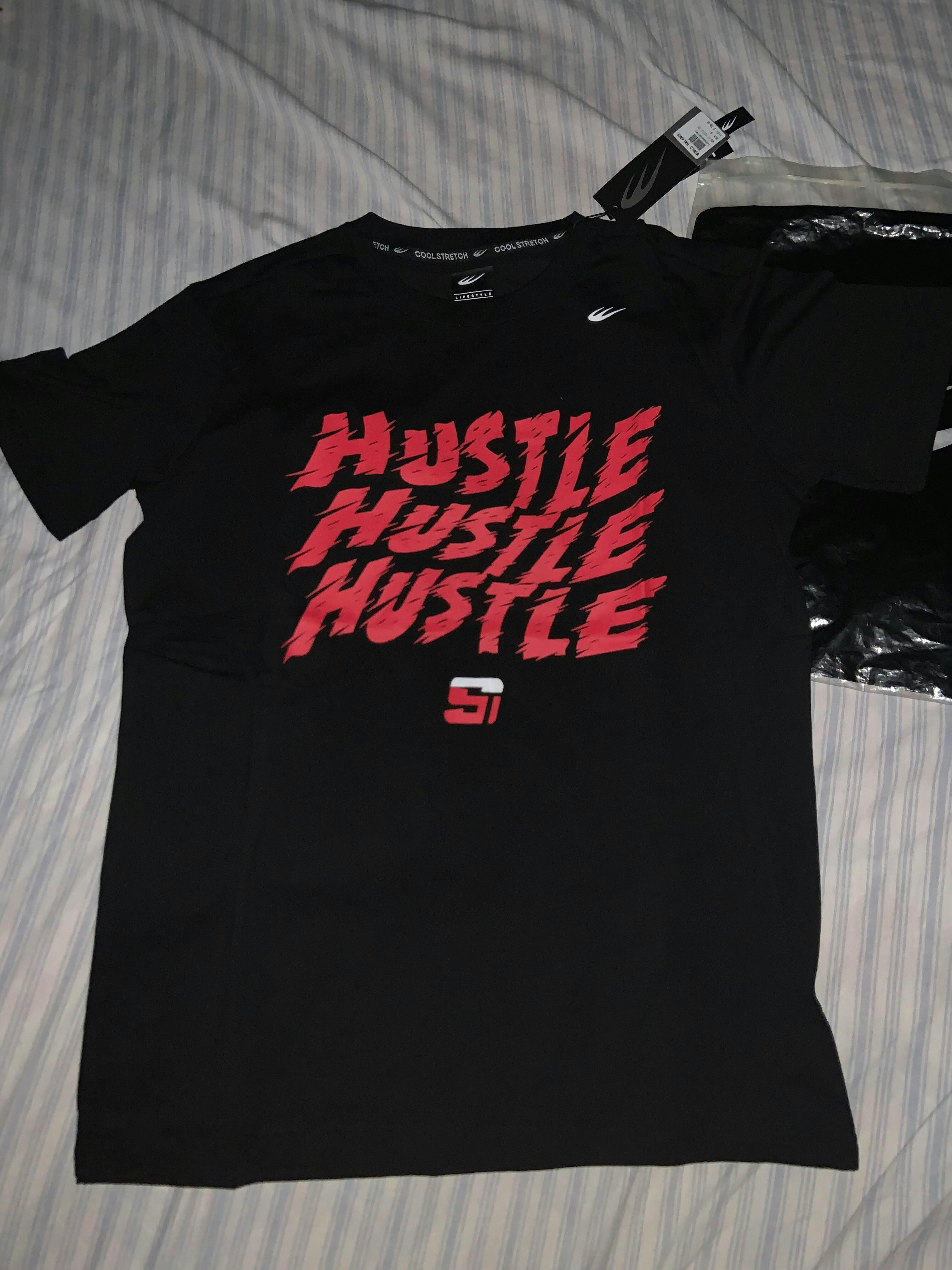 The tee features Scottie Thompson’s moniker “Hustle” and his official logo on the front, applied in rubber print.